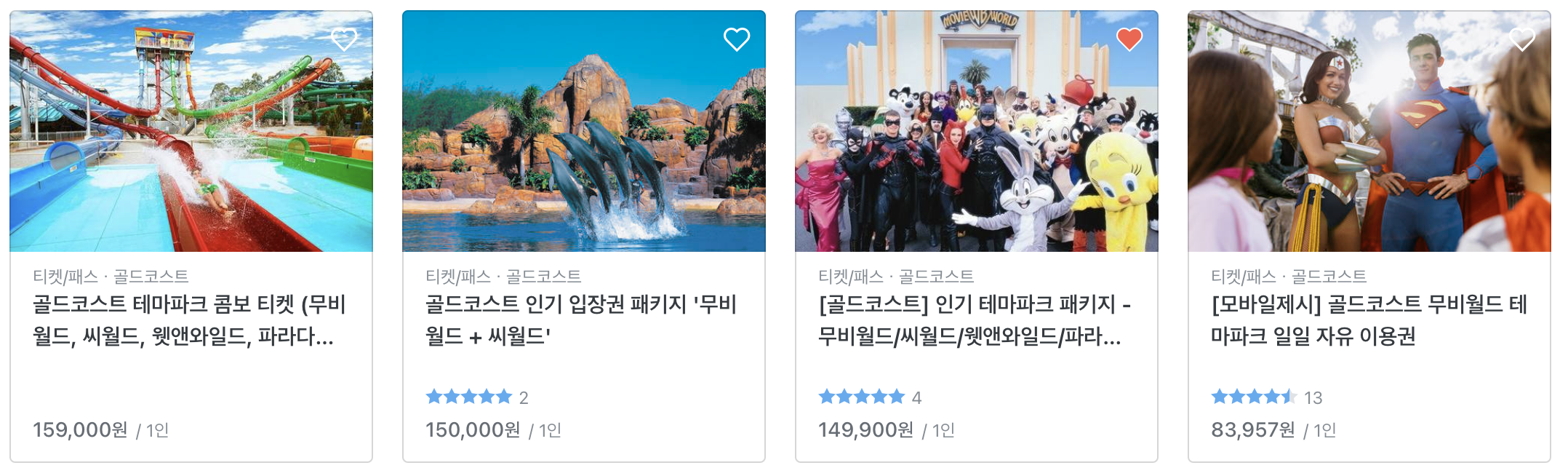 ‘골드코스트’를 검색하면 테마파크 관련 상품이 1~2개 나오는데 3일권이 158,200원에 나와있다.