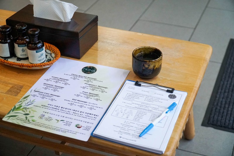 마사지를 받기 전에 집중하고 싶은 부분과 피해야 할 부분에 대해 말씀드렸습니다. 그 후 마사지실로 들어갔습니다. 마사지실도 다양하게 있는데 저희는 2인용 커플룸을 받아서 프라이빗하게 지낼 수 있어서 좋았어요. 객실 내부에는 옷걸이, 거울, 개인 물품 보관소도 마련되어 있습니다. 고민 없이 옷을 갈아입었어요.